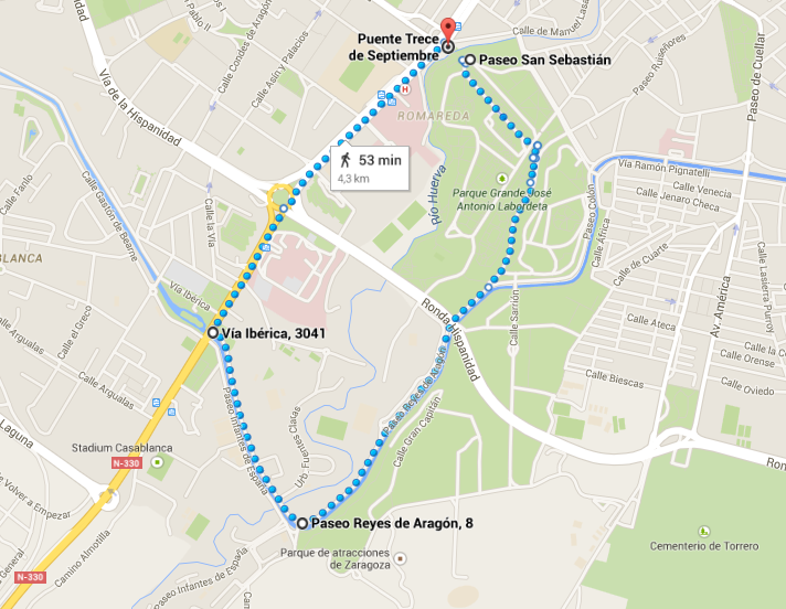 Antes del desvío que lleva hasta el Parque de Atracciones, giraremos hacia la derecha hasta Vía Ibérica y una vez allí iremos hacia la Romareda, terminando en el Parque Grande de nuevo.